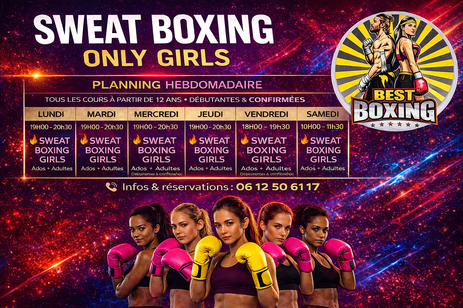 🥊 NOUVEAU PLANNING Du 02 mars au 27 juin 2026 Les beaux jours arrivent ☀️ Les journées se rallongent et la circulation devient plus fluide pour venir s’entraîner à la salle 💥 À partir du 02 mars 2026, le nouveau planning Sweat Boxing Girls entre en vigueur ! Les cours de boxe thaï et de boxe anglaise seront désormais intégrés dans les séances de SWEAT BOXING GIRLS, avec des thématiques spécifiques : 🥊 Séances orientées boxe anglaise 🔥 Séances orientées boxe thaï Toujours le même esprit : ✔ 100 % féminin ✔ Tous niveaux ✔ Débutantes bienvenues ✔ Intensité, technique et dépassement de soi Merci à toutes pour votre compréhension et votre énergie incroyable 💖 Girls Power 💪🔥 Force à vous les girls ! — Annecy Best Boxing